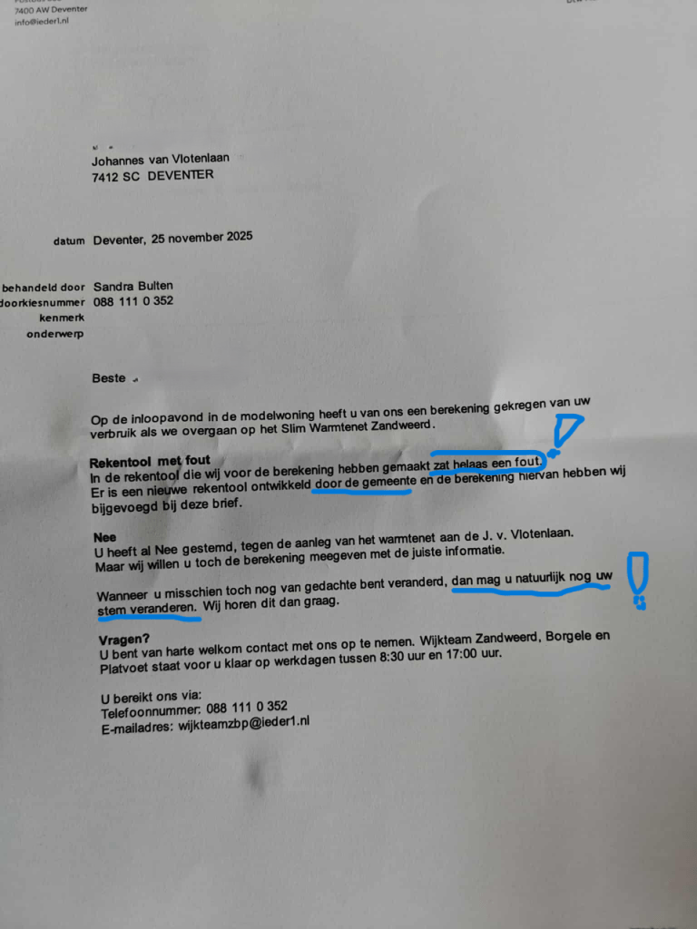 En volledig belangeloos heeft de gemeente een nieuwe rekentool gemaakt, omdat Ieder1 niet competent is? Wat deed die ambtenaar dan in dat duo? En dat warmtenet is toch van de gemeente en niet van Ieder1?